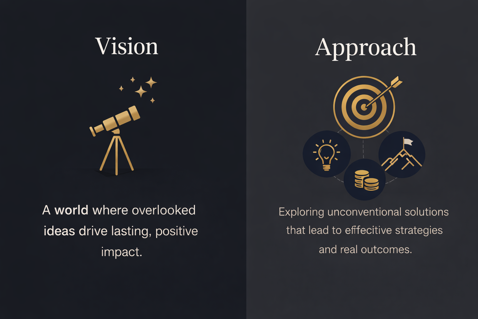 Unorthodox Solutions helps leaders transform ambitious ideas into durable institutions and initiatives. We work with founders, nonprofit organizations, and civic leaders to develop the strategic frameworks, governance structures, and operational foundations necessary to launch and sustain impactful work.